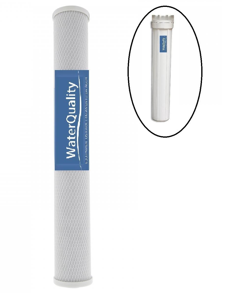 Elemento Filtrante de Carvão Ativado em bloco (Carbon Block) com prata coloidal, utilizado para adsorção do cloro e seu odor, além de sedimentos, ferrugem, partículas e substâncias químicas orgânicas, acentuando o gosto da água pura, enquanto permite que os minerais benéficas (tais como cálcio, magnésio e potássio), permaneçam na água.