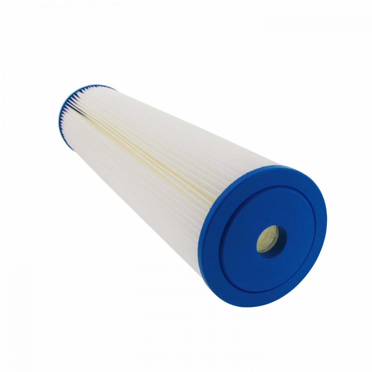 Elemento Filtrante Plissado, Lavável, para poço ou cavalete, e reutilizável, em poliéster, 50 micra, com a finalidade de remover os sólidos em suspensão na água, com 4,5” de largura e altura de 20” (carcaça do bigblue).